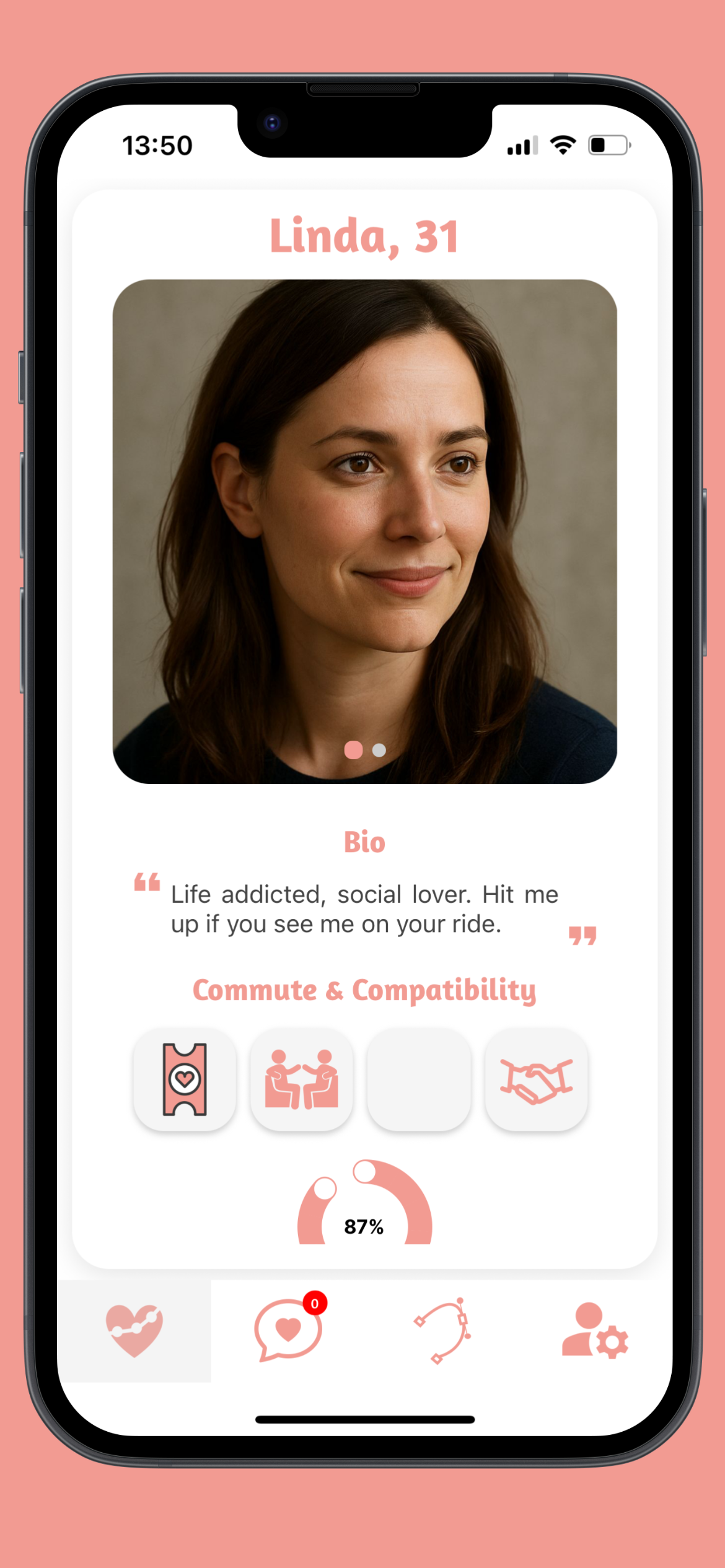 This ensures that users are matched with others who share a similar commuting experience, which can help facilitate more meaningful connections.